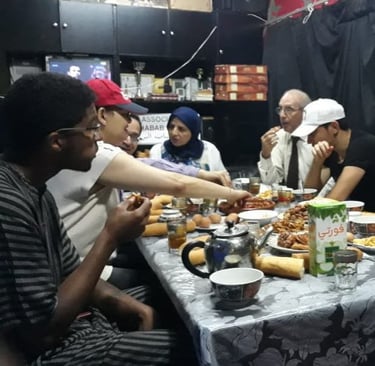 Distributing and serving food and delicacies to the beneficiaries of the association